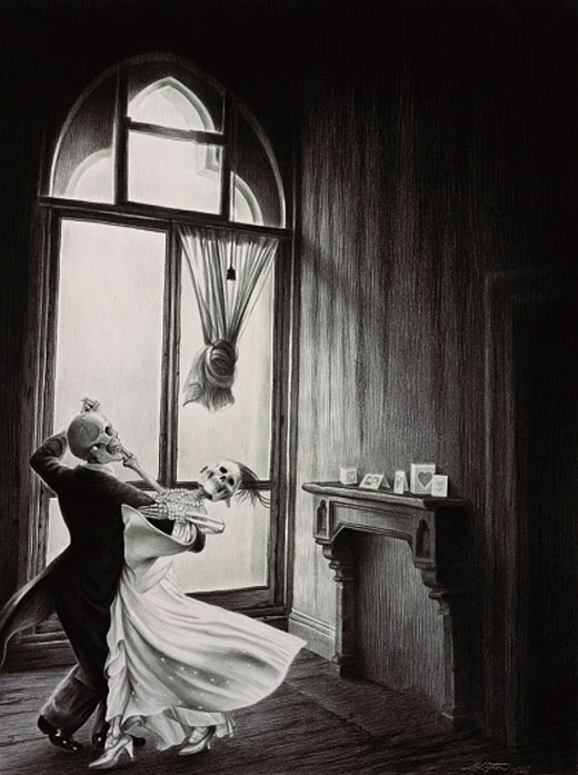 Buscando inspiração em grandes artistas como Durer, Memling, Van Eyck, Rembrandt, Goya e na fotógrafa Diane Arbus, seus desenhos absurdamente detalhados são feitos apenas com lápis grafite e carvão.